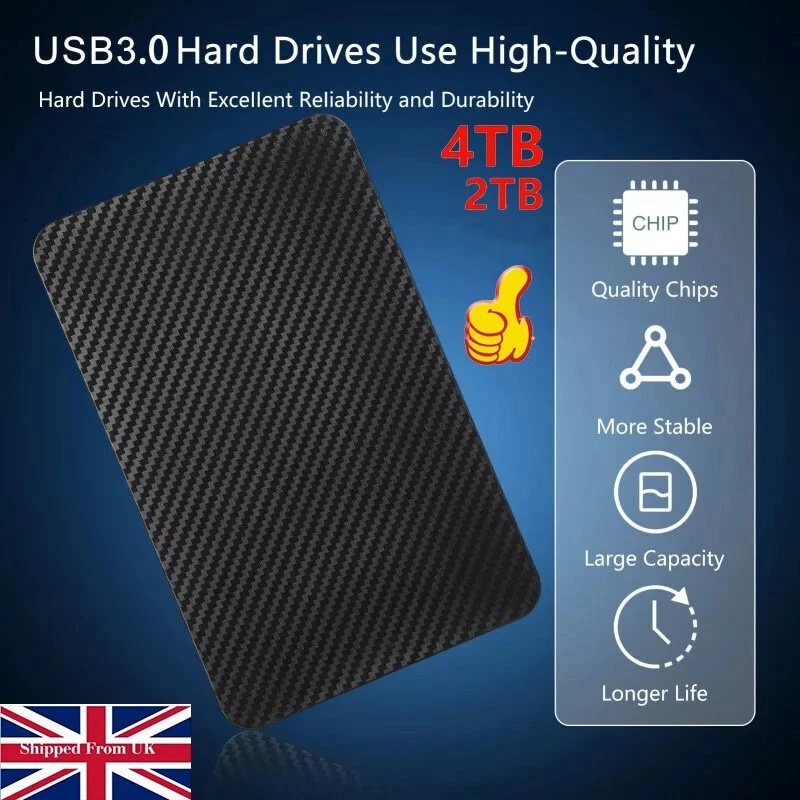 Large-capacity Storage: USB hard drive provides 2/4 TB large-capacity storage space, allowing you to easily store and manage large amounts of data, files and media content. Whether it’s photos, videos, music or office files, you can store them safely on this drive.