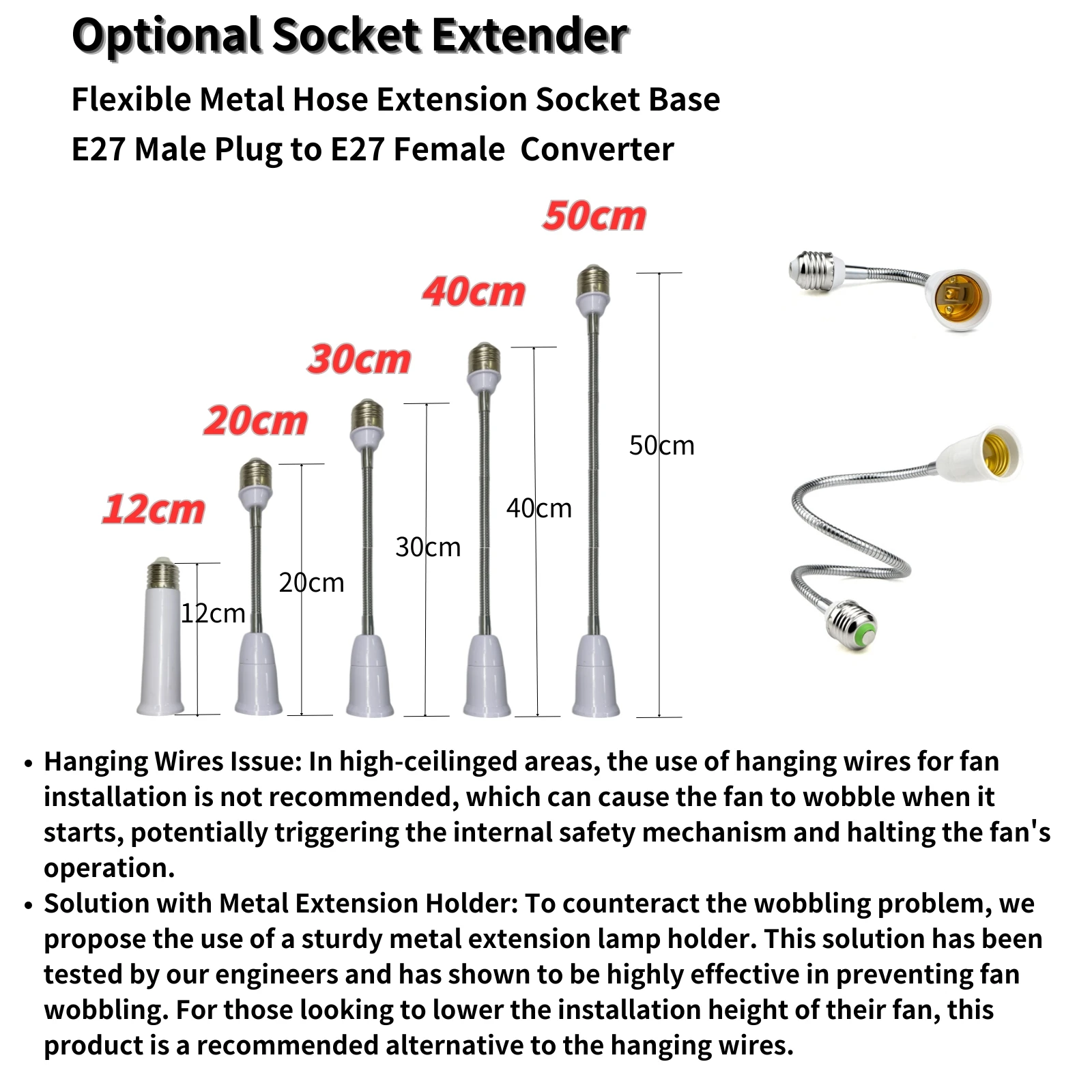 Dynamic Balance Issues: Motors require stable mechanical and electrical conditions to operate effectively and avoid vibration and instability. The instability caused by hanging wires can lead to increased vibrations and noise during operation, negatively impacting the fan light’s performance as well as the longevity and safety of both the motor and its installation structure.