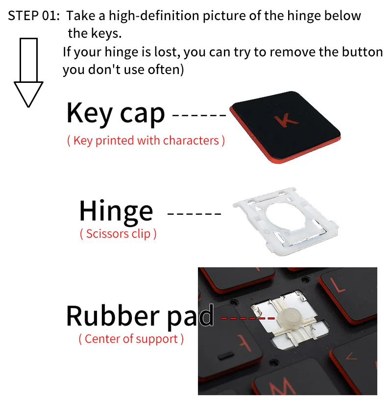 Contact Us, 1 Keycap, 2 Hinge, 1 Hinge, 3 Hinge, 5 Rubber pad, Send picture hinge, 4 Keycap, 2 Keycap and Hinge, 1Keycap Hinge Rubber, 2 Keycap, 1 Keycap and Hinge, 3 Keycap, 3 Keycap and Hinge, 4 Keycap and Hinge
